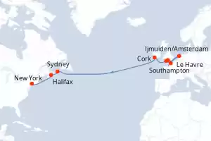 Itinerario : Southampton, Ijmuiden/Amsterdam, Le Havre, Portland, Cork, Sydney, Halifax, New York