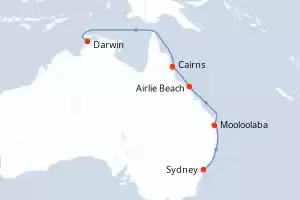 Itinerario : Sydney, Mooloolaba, Airlie Beach, Cairns, Darwin, Komodo, Benoa, Singapore
