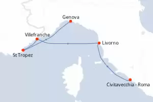Itinerario : Genova, St Tropez, Villefranche, Livorno, Civitavecchia - Roma