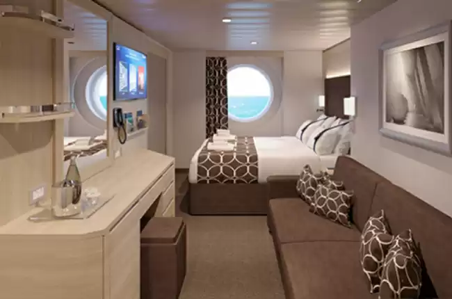 Le cabine con vista mare offrono una superficie che va da 12 a 20 m². Sono dotate di aria condizionata, di un letto matrimoniale modulabile in due letti singoli, di un angolo soggiorno con divano, di un armadio e di un bagno con doccia. Dispongono inoltre di una toeletta con asciugacapelli, di una TV interattiva, di un telefono, di una cassaforte e di un mini-bar.