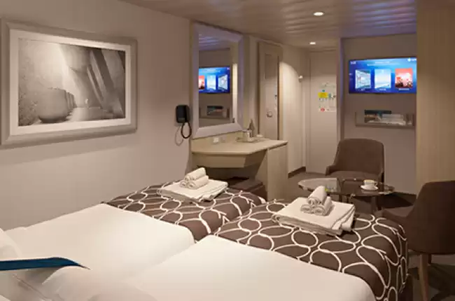 Le cabine interne dispongono di una superficie compresa tra 10 e 15 m². Sono arredate con un letto matrimoniale o due letti singoli, un armadio, un bagno con doccia, nonché una toeletta, un asciugacapelli e l’aria condizionata. Tra gli equipaggiamenti disponibili si trovano una TV interattiva, un telefono, una cassaforte e un mini-bar.