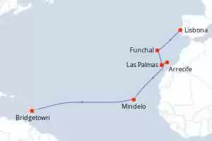 Itinerario : Bridgetown, Mindelo, Arrecife, Las Palmas, Funchal, Lisbona