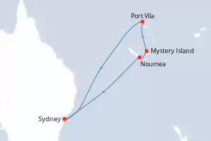 Le sue partenze sono principalmente da Sydney, con itinerari verso la Grande Barriera Corallina, la Tasmania, la Nuova Caledonia, Vanuatu, Fiji e altre isole del Pacifico del Sud; alcune rotazioni compaiono anche con partenza da Melbourne e da Singapore.
