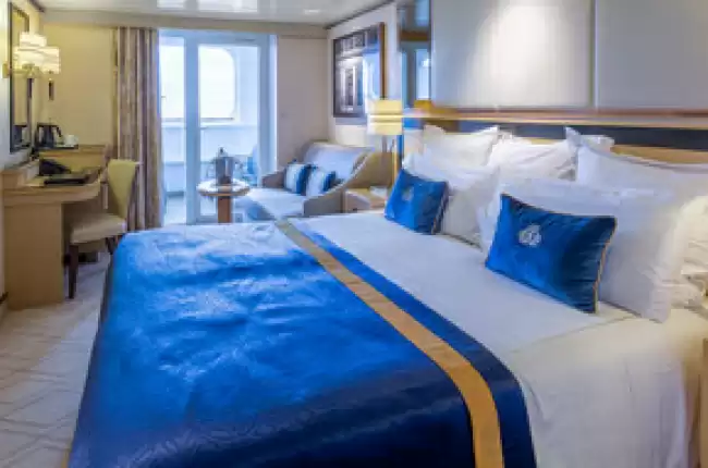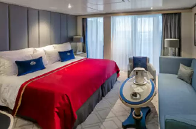 Le cabine Britannia Club con Balcone, con una superficie di 23 m², combinano eleganza e comfort. Queste cabine includono un ampio balcone privato che offre una vista mozzafiato sull’oceano, arredato con due sedie e un tavolo. Lo spazio interno comprende un letto King-size o due letti singoli, un salotto dotato di divano e tavolo, una scrivania, nonché un bagno con doccia. In aggiunta, gli equipaggiamenti comprendono una television, un asciugacapelli, una cassaforte, una macchina per espresso e una selezione premium di prodotti Penhaligon. Avrete anche il piacere di accappatoi e pantofole in velluto. Tra le prestazioni offerte si trovano il vino spumante di benvenuto, l’imbarco e lo sbarco prioritari, nonché l’accesso esclusivo alla cena servita in cabina a partire dal menù del Britannia Club, oltre ai servizi abituali disponibili 24h/24.