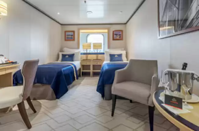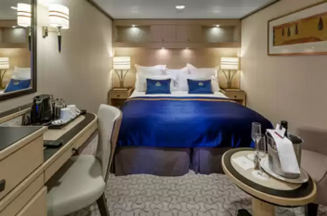 Le cabine Britannia Esterne offrono un’esperienza arricchita dalla presenza di una vista sull’oceano. Con una superficie che va da 14,7 m² a 18 m², dispongono di un letto King-size o di letti singoli a seconda della vostra preferenza, di uno spazio salotto confortevole con poltrona e tavolo, nonché di una scrivania. Il bagno privato, equipaggiato con doccia, completa il comfort interno. Le comodità includono una television, un asciugacapelli, una cassaforte e una selezione di prodotti Penhaligon, accompagnati da accappatoi e pantofole. Un caloroso benvenuto vi attende con del vino spumante offerto in regalo, e i vantaggi includono il servizio in camera continuo, un servizio serale, l’accesso gratuito al tè e caffè, l’utilizzo della lavanderia in self-service e la possibilità di cenare direttamente nella vostra cabina scegliendo dal menù del ristorante Britannia.