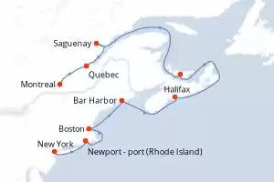 Itinerario : New York, Newport - port (Rhode Island), Boston, Bar Harbor, Halifax, Charlottetown, Saguenay, Quebec, Montreal