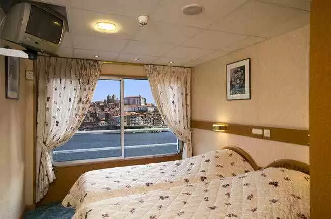 La MS Infante don Henrique propone 66 cabine ripartite su tre ponti. Il ponte superiore accoglie 38 cabine con grande finestra a apertura alta, il ponte intermedio 19 cabine (2 singole) con finestra a apertura alta e il ponte principale 14 cabine (2 singole) con finestra. La decorazione che combina fucsia e prugna compone un’atmosfera chic e riposante.