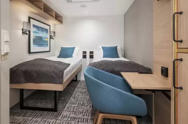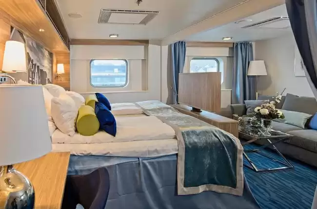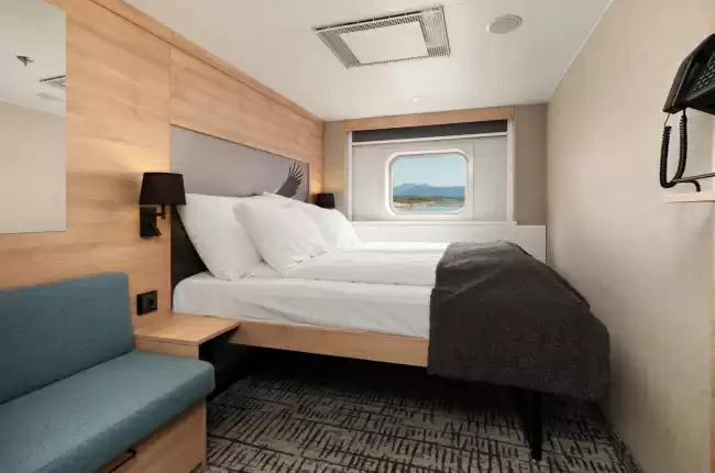 Le cabine Polar interne o esterne (8 a 12 m²) sono le opzioni più economiche, dotate di doccia/WC e configurabili con letti separati o a castello. Le cabine esterne dispongono di oblò o finestra affacciata sul mare. Le cabine Arctic Superior offrono un livello di comfort superiore, mentre le suite Expedition (mini-suite) sono più spaziose, con angolo salotto e dotazioni di alta gamma.