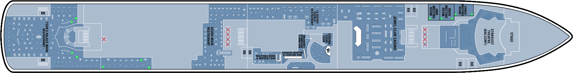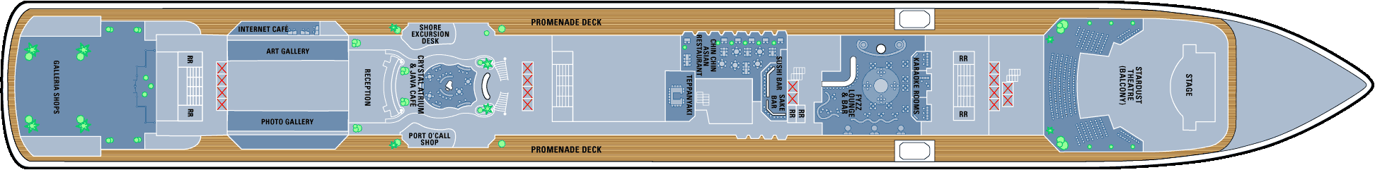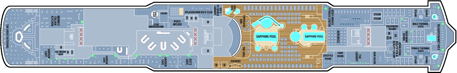 Al fine di garantire ai suoi passeggeri una crociera indimenticabile, la compagnia ha creato il Pearl Club Casino sul ponte 6. Esso invita i giocatori a giocare a blackjack, craps, roulette e slot machine. Sul ponte 7, si trova il bowling. Se preferisci i giochi di carte o i giochi da tavolo, recati al ponte 12 dove c'è una sala dedicata. Sali sul ponte superiore durante il giorno e scopri la Spinnaker lounge e la Bliss Ultra lounge. I saloni offrono giochi di bingo, lezioni di ballo e spettacoli diurni. Anche gli amanti della vita notturna troveranno il loro posto in questi salotti animati da un dj al tramonto.