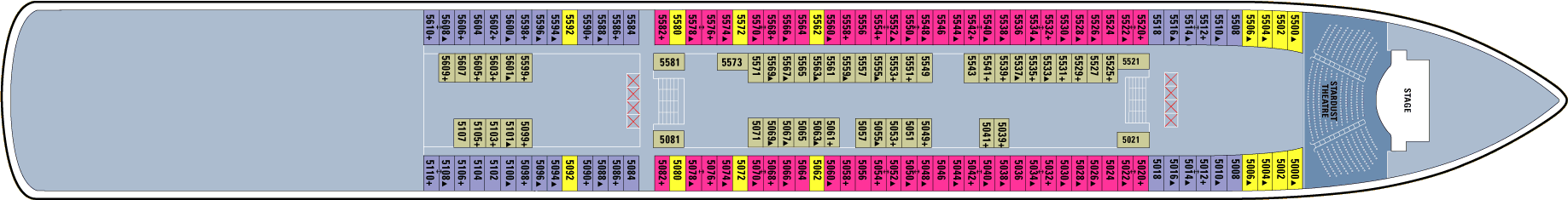 Gli spettacoli e le serate d'intrattenimento sono da scoprire sui ponti 5, 6 e 7 allo Stardust Theater. Il teatro invita i suoi ospiti a spettacoli come "Legends in Concert". Nella grande sala del teatro si svolgono anche spettacoli di canto e danza, oltre a spettacoli di attori e illusionisti. Gli spettacoli e l'intrattenimento nello Stardust Theater iniziano alle 19:00 e alle 21:00. Sul ponte 7, l'Atrium ospita anche concerti di pianoforte e gruppi jazz. Spesso si organizzano anche dimostrazioni culinarie e laboratori. La nave offre anche intrattenimento sulla terrazza della piscina principale con concerti, serate danzanti e attività divertenti.