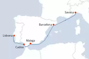 Itinerario : Savona, Barcellona, Malaga, Cadice, Lisbona