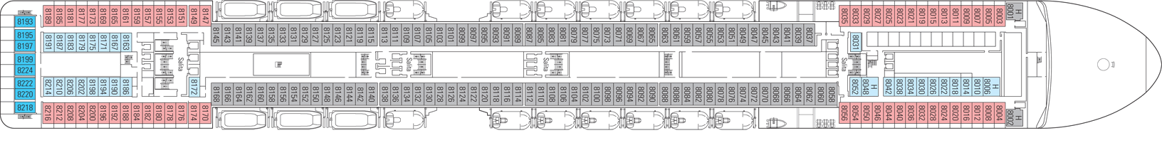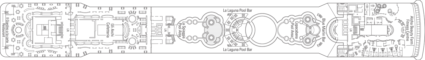 Ottima la cabina, buono il servizio, buoni i pasti, insufficienti le piscine e li spazi esterni