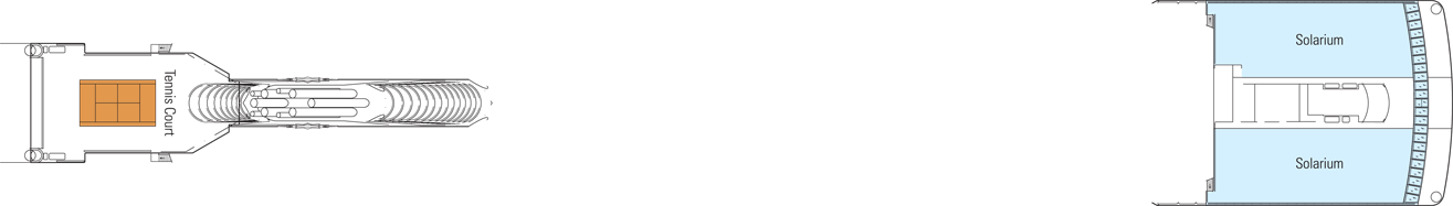 Le due piscine della MSC Orchestra situate sul ponte 13 sono diventate il punto di ritrovo obbligato di tutti i passeggeri per godere delle giornate di sole. Si tratta di piscine con acqua di mare. Sono disposte al centro del solarium con sedie a sdraio per rilassarsi e prendere il sole. E per chi desidera rilassarsi, accanto a queste piscine si trovano le vasche idromassaggio. Ognuna di queste piscine dispone anche di un proprio bar dove è possibile ordinare smoothies e cocktail. La più grande delle piscine della nave è anche sormontata da uno schermo gigante per proiezioni cinematografiche inedite all'aperto. Affinché i più piccoli possano scoprire anche le gioie dell'acqua, a bordo della MSC Orchestra è disponibile una piscina per bambini.