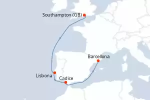 Itinerario : Southampton, Lisbona, Cadice, Barcellona