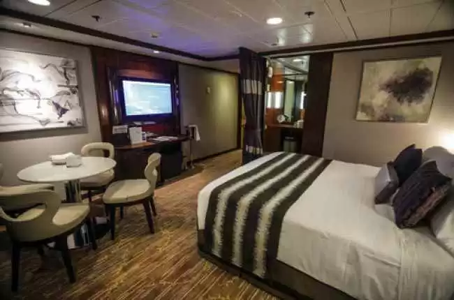 Le suite Club Balcony sono moderne e raffinate, con una superficie da 25 a 38 m² e un balcone da 5 a 7 m². Quanto alle suite del complesso The Haven, sono le più lussuose della nave. Includono un servizio maggiordomo permanente, concierge e accesso a un solarium privato.