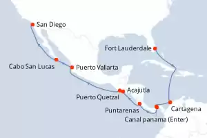 Itinerario : Fort Lauderdale, Cartagena, Canal panama (Enter), Canal panama (Exit), Puntarenas, Acajutla, Puerto Quetzal, Puerto Vallarta, Cabo San Lucas, San Diego