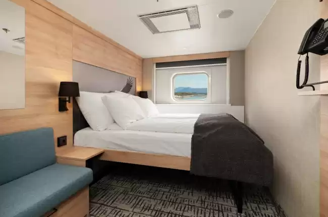 Le cabine si declinano in varie categorie: Polar Inside o Outside (con oblò), Arctic Supérieure per un comfort maggiore e Suites Expedition situate sul ponte superiore con salottino, TV e un piccolo cadeau di benvenuto.