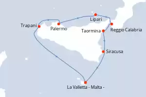Itinerario : La Valletta - Malta -, Trapani, Palermo, Lipari, Reggio Calabria, Taormina, Siracusa, La Valletta - Malta -