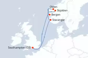 Itinerario : Southampton, Stavanger, Olden, Skjolden, Bergen, Southampton