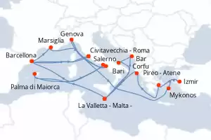Itinerario : Civitavecchia - Roma, Barcellona, Marsiglia, Salerno, Genova, Mykonos, Izmir, Pireo - Atene, Corfu, La Valletta - Malta -, Bar, Bari, La Valletta - Malta -, Palma di Maiorca, Napoli, Barcellona, Civitavecchia - Roma