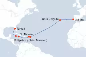 Paesi Bassi, Portogallo, Stati uniti, isole Cayman, Giamaica Itinerario: Lisbona , Punta Delgada , Philipsburg (Saint Maarten) , St. Thomas , Falmouth , Georgetown , Tampa Pensione completa Norwegian Star 16 giorni Cabina standard Lisbona 20/11/2025 da 374 € Pensione completa Vedere le offerte