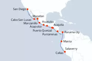 Perù,Equatore,Panama,Costa Rica,Salvador,Guatemala,Messico,Stati uniti Itinerario: Callao , Salaverry , Salaverry , Manta , Panama city , Puntarenas , Acajutla , Puerto Quetzal , Huatulco , Acapulco , Manzanillo , Mazatlan , Cabo San Lucas , San Diego Pensione completa Norwegian Jade 18 giorni Cabina standard Callao 11/03/2026 da 2270 € Pensione completa Vedere le offerte