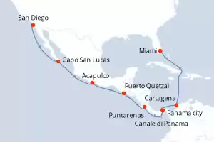 Stati uniti, Colombia, Panama, Costa Rica, Guatemala, Messico Itinerario: San Diego , Cabo San Lucas , Acapulco , Puerto Quetzal , Puntarenas , Panama city , Canale di Panama , Cartagena , Miami Pensione completa Norwegian Jade 16 giorni Cabina standard San Diego 12/02/2026 da 1655 € Pensione completa Vedere le offerte