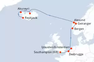 Norvegia, Paesi Bassi, Belgio, Regno Unito, Islanda Itinerario: Southampton , Zeebrugge , Ijmuiden/Amsterdam , Bergen , Geiranger , Alesund , Akureyri , Isafjordur - Islande , Reykjavik Pensione completa Norwegian Prima 12 giorni Cabina standard Southampton 27/06/2027 da 2300 € Pensione completa Vedere le offerte