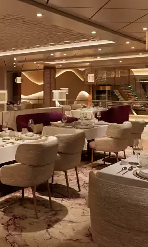 Progettata come un grande resort galleggiante, la nave AROYA si sviluppa su più ponti e offre numerose cabine e suite luminose, spesso con balcone, veri rifugi privati tra uno scalo e l’altro. Gli spazi comuni sono ampi: saloni panoramici, un grande teatro, un’area acquatica con scivoli, club dedicati a bambini e adolescenti, un centro benessere e strutture sportive complete. L’equipaggio, sempre presente e attento, accompagna i passeggeri durante tutto il soggiorno per rendere ogni momento fluido e confortevole. Per chi desidera un livello superiore di esclusività, il complesso Khuzama riunisce suite premium con servizi personalizzati (maggiordomo, imbarco prioritario, ristorante e lounge privati), aggiungendo una dimensione ancora più raffinata all’esperienza AROYA.