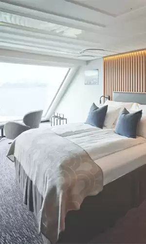 Le cabine e le suite a bordo di Havila Voyages offrono un elevato standard di comfort alberghiero. Ciascuna costituisce un nido dal design nordico essenziale, ben più vasto della media abituale su questa linea. Ampie finestre (anche in alcune categorie standard) permettono di non perdere nulla dello spettacolo naturale. Le suite, situate spesso a prua o a poppa delle navi, beneficiano di balconi privati spettacolari e di servizi attenti (colazione esclusiva, imbarco prioritario), garantendo un'esperienza altamente esclusiva di fronte agli elementi.