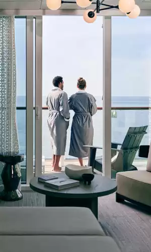 Le cabine e le suite delle navi di Celebrity Cruises offrono un comfort notevole, con attrezzature di alta gamma come letti king-size, bagni eleganti e balconi privati. Esclusivo per i passeggeri delle suite, il complesso The Retreat offre ai suoi ospiti una gamma di servizi di lusso, inclusi un maggiordomo dedicato, un ristorante privato Luminae con piatti firmati dallo chef Daniel Boulud, e un salone esclusivo dove rilassarsi in totale privacy. I passeggeri delle suite hanno anche accesso a una piscina privata, al sundeck, e godono di molte altre comodità, come il trattamento prioritario dei bagagli e servizi di concierge personalizzati.