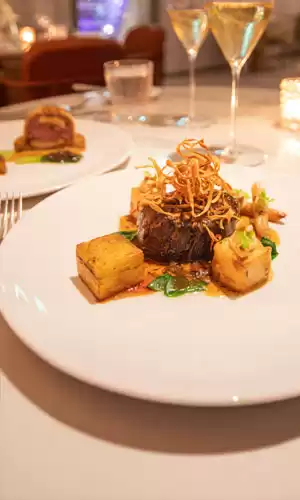 A bordo delle navi di Celebrity Cruises, i passeggeri possono gustare esperienze culinarie eccezionali firmate da chef stellati Michelin. Con menu elaborati da chef rinomati, ogni pasto diventa un viaggio gastronomico unico. Il ristorante gourmet Le Voyage, progettato da Daniel Boulud, propone una cucina raffinata ispirata ai sapori del mondo, con piatti come il Risotto all'aragosta e la Pavlova ai frutti rossi. L'atmosfera del ristorante, creata dal duo di designer Jouin Manku, è intima e sofisticata, offrendo un'esperienza tanto visiva quanto gustativa. Particolare attenzione è riservata anche alla carta dei vini, che è tra le più premiate in mare.