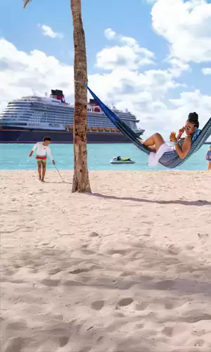 Uno dei grandi pregi di Disney Cruise Line è Castaway Cay, un'isola paradisiaca privata situata nelle Bahamas, appositamente allestita per i crocieristi Disney. In essa si trovano diverse spiagge per famiglie, bambini e adulti, sentieri per passeggiate, attività nautiche, barbecue all'aperto e numerose animazioni Disney. Nel 2024, una seconda isola privata, Lookout Cay a Lighthouse Point, si è aggiunta all’offerta, arricchendo ulteriormente gli itinerari proposti. Questi scali permettono ai passeggeri di godere del mare in un contesto esclusivo, sicuro e sempre intriso di magia.