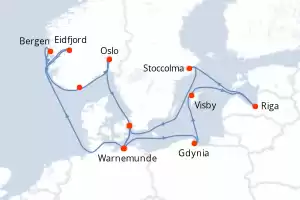 Norvegia, Germania, Danimarca, Svezia, Lettonia, Polonia Itinerario: Warnemunde , Gdynia , Visby , Riga , Stoccolma , Copenhagen , Warnemunde , Eidfjord , Bergen , Kristiansand , Oslo , Copenhagen , Warnemunde Pensione completa MSC Magnifica 15 giorni Cabina standard Warnemunde 05/07/2026 da 2059 € Bambini gratis fino a 12 anni Mini Club bambini gratis Msc Voyagers Club Animazione a bordo Pensione completa Altri porti d'imbarco : Copenhagen Vedere le offerte