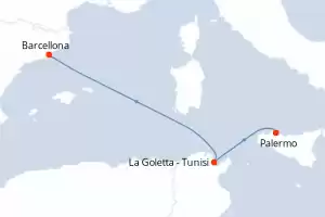 Tunisia, Italia, Francia, Spagna Itinerario: Palermo , La Goletta - Tunisi , Barcellona , Marsiglia , Genova , Napoli , Palermo Pensione completa MSC Splendida 8 giorni Cabina standard Palermo 17/12/2025 da 449 € Bambini gratis fino a 12 anni Mini Club bambini gratis Msc Voyagers Club Animazione a bordo Pensione completa Partenza dall'Italia Altri porti d'imbarco : Napoli Genova Barcellona Marsiglia Altre partenze : 12-19-26 nov. 25 3-10-24-31 dic. 25 11-18-25 feb. 26 Altre partenze Vedere le offerte