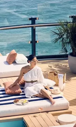 A bordo, l’esperienza non si limita all’allogio e alla gastronomia. I passeggeri godono anche di una spa The Ritz-Carlton, di spazi dedicati al benessere, di eleganti aree relax e di installazioni pensate per assaporare pienamente il rapporto con il mare. Una delle firme della collezione risiede nella sua marina di poppa, che offre un accesso diretto all’acqua in alcuni porti o quando lo yacht è all’ancora, e permette allora di praticare attività nautiche come paddle, kayak, snorkeling o il bagno. Questa vicinanza con il mare rafforza il carattere esclusivo e rilassato del viaggio, in uno spirito di villeggiatura chic e contemporanea.