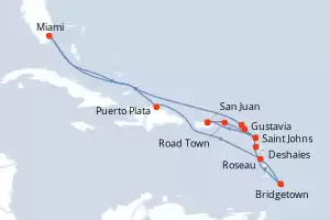 Antigua e Barbuda, Repubblica dominicana, Portorico, Regno Unito, Stati uniti, Francia, Barbados, Dominica Itinerario: San Juan , Road Town , Saint Johns , Gustavia , Road Bay , Miami , Puerto Plata , Roseau , Bridgetown , Deshaies , Saint Johns , San Juan Pensione completa EXPLORA I 16 giorni Suite San Juan 05/02/2026 da 6120 € Bevande Premium Incluse Wi-Fi Incluso Servizio di bordo incluso Una bottiglia di champagne di benvenuto inclusa Crociera Ultra Lusso Pensione completa Vedere le offerte