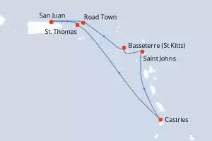 Regno Unito, Portorico, Saint-Vincent e le Grenadine, Stati uniti, Barbados Itinerario: San Juan , Road Town , Bridgetown , Kingstown , Basseterre (St Kitts) , Santa Croix , San Juan Pensione completa Valiant Lady 8 giorni Cabina standard San Juan 10/01/2026 da 672 € Ristoranti di specialità inclusi Wifi standard incluso Bevande analcoliche incluse 100% adulti Pensione completa Vedere le offerte