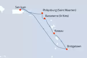 Portorico, Regno Unito, Barbados, Paesi Bassi, Dominica Itinerario: San Juan , Philipsburg (Saint Maarten) , Basseterre (St Kitts) , Roseau , Bridgetown , San Juan Pensione completa Valiant Lady 7 giorni Cabina esterna San Juan 29/11/2025 da 629 € Ristoranti di specialità inclusi Wifi standard incluso Bevande analcoliche incluse 100% adulti Pensione completa Vedere le offerte