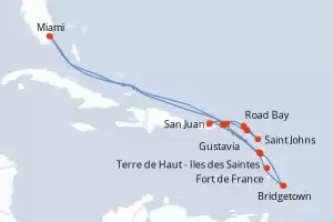 Regno Unito, Dominica, Barbados, Portorico, Antigua e Barbuda, Francia, Paesi Bassi, Stati uniti Itinerario: Bridgetown , Roseau , Philipsburg (Saint Maarten) , San Juan , Road Bay , Saint Johns , Gustavia , Road Town , Miami , Charlotte Amalie , Terre de Haut - Iles des Saintes , Bridgetown Pensione completa EXPLORA I 16 giorni Suite Bridgetown 17/11/2025 da 10880 € Bevande Premium Incluse Wi-Fi Incluso Servizio di bordo incluso Una bottiglia di champagne di benvenuto inclusa Crociera Ultra Lusso Pensione completa Vedere le offerte