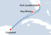 Diverse compagnie come Royal Caribbean , Costa Crociere e mettono a disposizione di croceristi navi di una grande capacità di accoglienza. Le crociere di una durata breve sono comuni per questa destinazione. Hanno una durata di circa 4-6 giorni. Per un periodo di 6 a 8 giorni, MSC ha diverse formule per visitare le tappe essenziali lungo le coste dei Caraibi e il Messico. Gli amanti di crociere più lunghe trovano anche la loro felicità attraverso i viaggi di dieci giorni o più, offerti da Costa Crociere.
