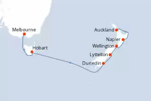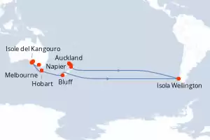 Nuova Zelanda, Australia Itinerario: Melbourne , Hobart , Hobart , Dunedin , Lyttelton , Wellington , Napier , Auckland , Melbourne , Hobart , Hobart , Dunedin , Lyttelton , Wellington , Napier , Auckland Pensione completa Silver Nova 13 giorni Suite Melbourne 30/11/2025 da 4700 € Pensione completa Vedere le offerte