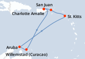Itinerario : San Juan, Tortola, Antigua, Philipsburg (Saint Maarten), Santa Croix, Basseterre (St Kitts), San Juan