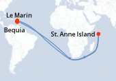 Itinerario : Fort de France, Saint Johns, La Romana, Isola Catalina, Bridgetown, Fort de France