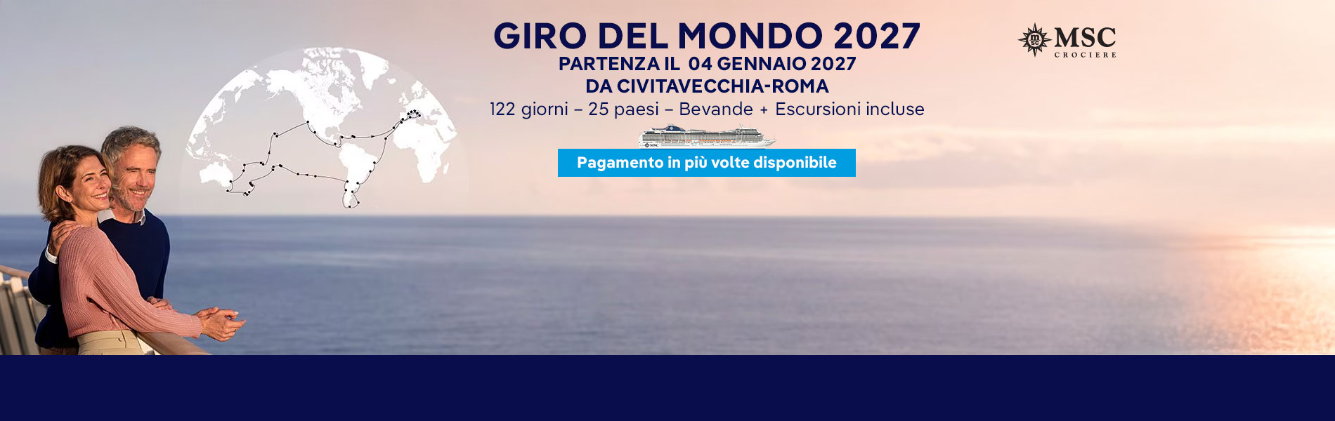 Una crociera Giro del Monde vi permette di visitare diversi Paesi e continenti senza dovervi preoccupare di dettagli logistici come le prenotazioni alberghiere o il trasporto tra le varie destinazioni. Gli itinerari sono pianificati con cura per massimizzare l'esperienza di viaggio.