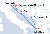Tra il Mediterraneo e l'Europa centrale, la Croazia divide le sue frontiere con la Slovenia, l'Ungheria, Bosnia-Erzegovina, la Serbia, ma anche con Montenegro a est. Se l'entroterra del paese è punteggiato di pianure, colline e laghi, un mare trasparente borda i suoi 1500 km di litorale. Su una superficie totale di 56 594 km², questo paese delle mille isole splende in particolare per le sue belle insenature e spiagge. Benché alcune insenature si siano urbanizzate in questi ultimi anni, il paese conta ancora numerosi paradisi nascosti, come le spiagge dell'isola di Dugi Otok che fanno parte dell'arcipelago di Zadar, a nord della Dalmazia. La più bella spiaggia dell'isola è quella di Sakarun, a nord. Si situa soltanto a 40 chilometri del parco nazionale preservato di Telašćica. Oltre alle sue ricchezze naturali, la Croazia offre anche scoperte culturali interessanti ai suoi ospiti. Questo paese ricco di tradizione possiede anche numerose città-museo come Rijeka. Situato nella baia di Kvarner, Rijeka è uno scalo di crociera apprezzato per le sue perle architetturali e i suoi gioielli storici, fra cui Trsat Castle.