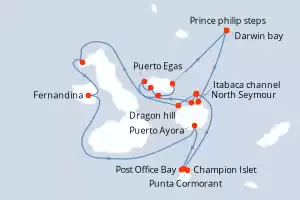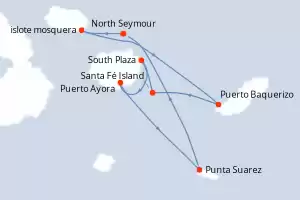 Equatore Itinerario: North Seymour , Dragon hill , Punta Vicente Roca , Fernandina , Puerto Ayora , Post Office Bay , Champion Islet , Punta Cormorant , North Seymour , Las Bachas , Buccaneer cove , Puerto Egas , Rabida , Bartolome , Prince philip steps , Darwin bay , Itabaca channel , North Seymour Pensione completa MS Santa Cruz II 14 giorni Cabina esterna North Seymour 03/01/2026 da 15580 € Pensione completa Altre partenze : 6 dic. 25 28 feb. 26 Vedere le offerte