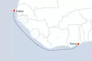 Senegal,Gana Itinerario: Dakar , Tema Pensione completa SH Diana 14 giorni Cabina esterna Dakar 22/09/2027 da 11450 € Pensione completa Vedere le offerte