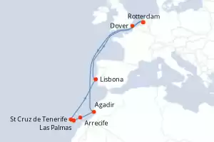 Portogallo, Paesi Bassi, Spagna, Regno Unito, Marocco Itinerario: Rotterdam , Agadir , Arrecife , Las Palmas , St Cruz de Tenerife , Lisbona , Dover , Rotterdam Pensione completa Nieuw Statendam 14 giorni Cabina esterna Rotterdam 18/04/2026 da 2699 € + da 3063 € Cucina raffinata Intrattenimento esclusivo a bordo Esperienza Premium Pensione completa Altri porti d'imbarco : Dover Vedere le offerte