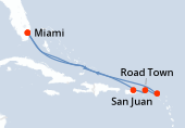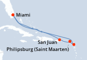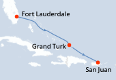 Situata a nord di Porto Rico, San Juan è uno scalo inevitabile delle crociere a Porto Rico. La capitale portoricana è una ricca ereditiera della colonizzazione spagnola come ne attesta il suo centro storico. La visita di questa parte di San Juan incrocia le diverse tendenze architetturali spagnole rappresentate dalla chiesa gotica della piazza San José che risale al XVIII secolo, la chiesa di San Juan Bautista stabilita nel 1540 e il Municipio ispirato a quello di Madrid. La Vecchia città di San Juan si trova alla punta di un'isola lunga 4 km che racchiude la baia di San Juan. La Muralla, la cinta muraria che circonda la città, è molto impressionante, culmina nella fortezza di El Morro, stabilita nel XVI secolo per proteggere la capitale. Da vedere anche, la fortezza di San Cristobal, certamente la più grande costruzione del genere costruita dagli spagnoli, e la Plaza Colón dove si erge la statua di Cristoforo Colombo.
